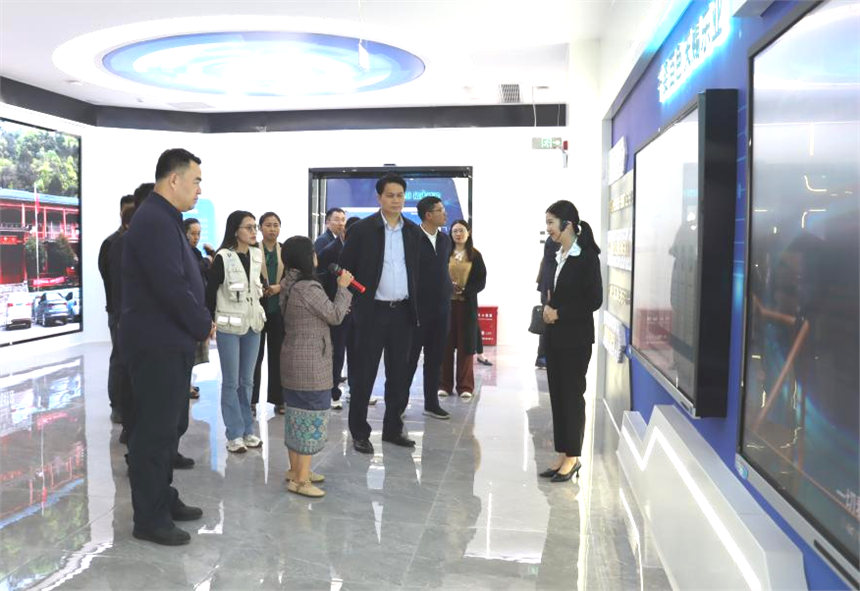 26日一早,老撾考察團首先來到凌云縣。他們走進迎暉儲能電站,了解中廣核在新能源領域的技術創新和助力能源供應的積極成效?疾靾F還深入下甲鎮平懷村和加西村、加尤鎮隴槐村,觀摩美麗鄉村建設,查看中廣核援建的大蠶房、茶葉加工廠,詳細了解了當地桑蠶產業、茶葉加工等特色產業發展成果。桑蠶產業是考察團此行“取經”的重點領域之一,加西村的現代化蠶房和隴槐村的蠶絲被制作令本空·臘將鵬一行印象深刻,考察團頻頻與蠶房技術人員互動,詳細了解了凌云縣桑蠶產業發展歷史、桑蠶養殖技術、蠶絲被制作工藝等情況,稱贊桑蠶資源多級利用的全產業鏈幫扶發展模式,并提出希望邀請當地桑蠶技術人員到老撾進行技術指導。